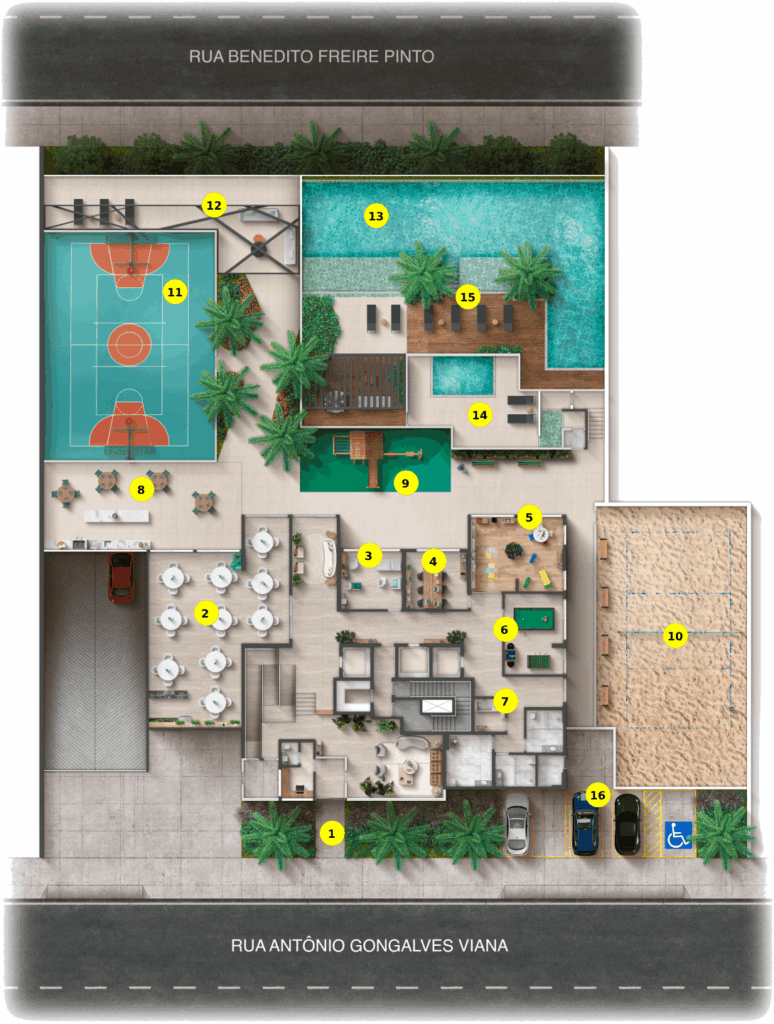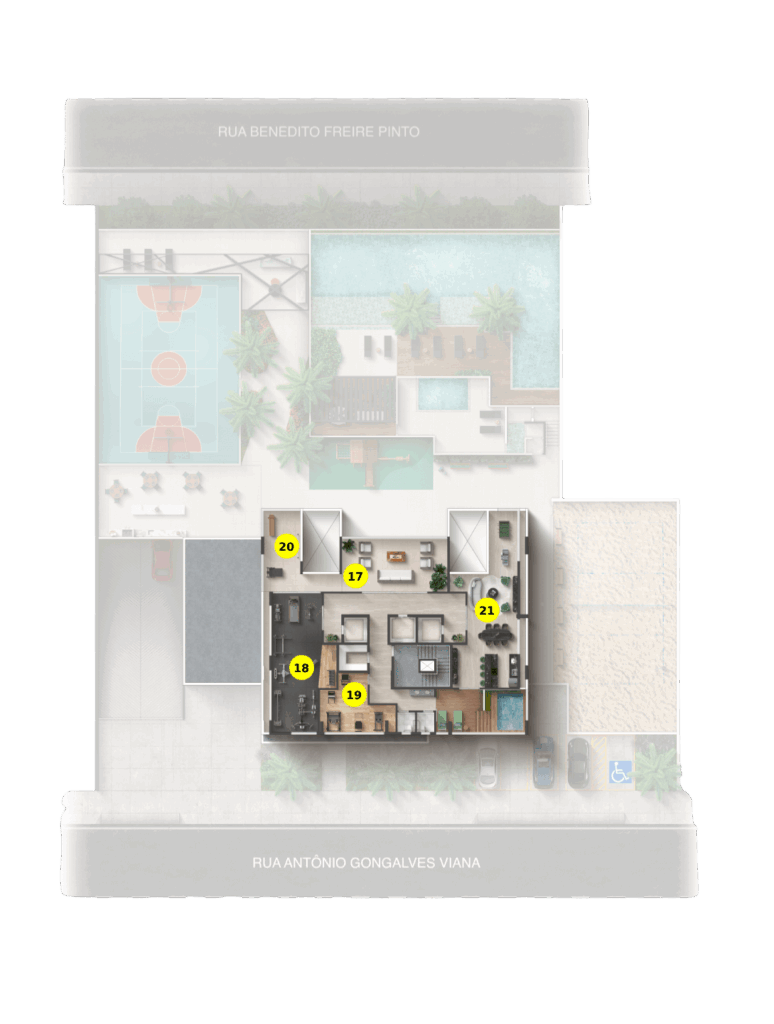 Apartamentos com 3 ou 4 suítes, infraestrutura moderna e um projeto que respeita o entorno urbano sem abrir mão da sofisticação.
